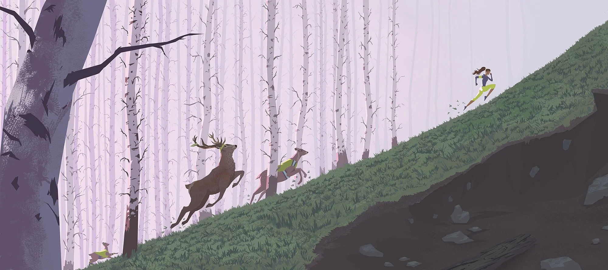 Slight Tweaks: There isn’t a huge jump between the sketch and the final. Most of the work was polishing and finding the right deer reference to fix their proportions/anatomy.