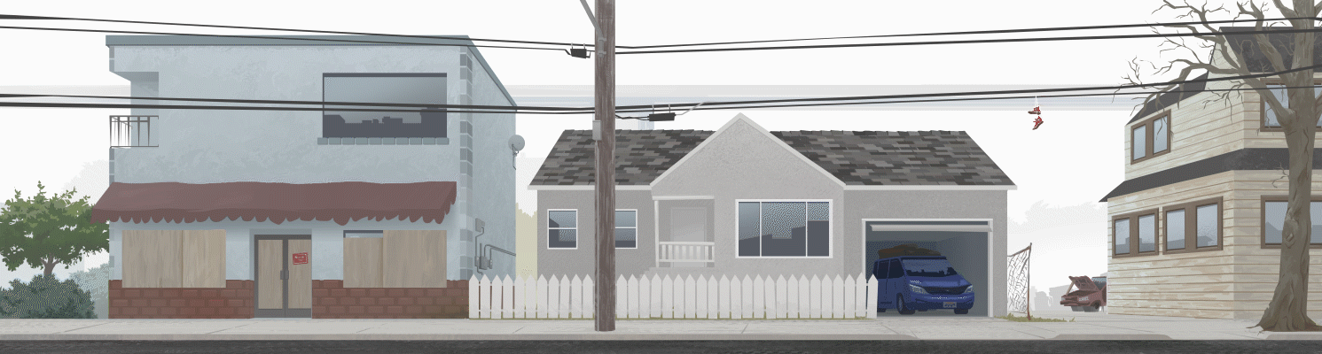 San Leandro Blvd. captures the cascading effects of the pandemic on the Bay Area. In 2020, thousands of Bay Area businesses closed their doors permanently, migration out of the area increased, and many residents who remained struggled to make ends meet.